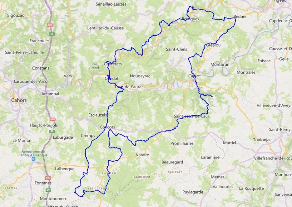 Boucle à partir de Cabrerets - 165 kms